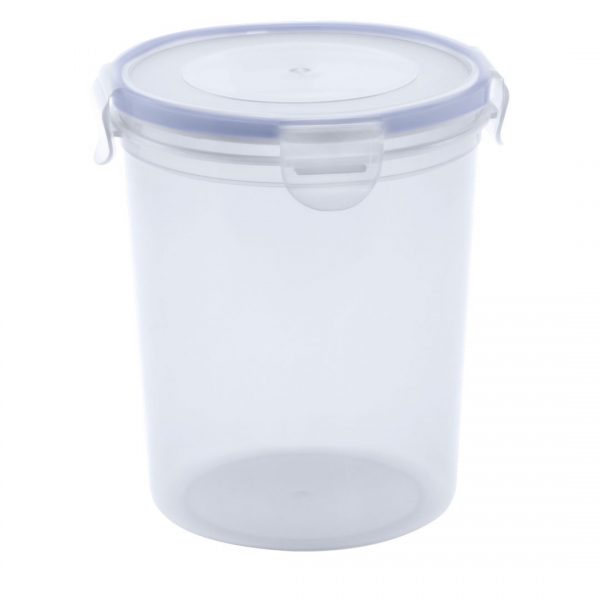 Tazón click clack redondo TR. (cilindro) 47oz. Este hermético plástico es un recipiente especial para almacenar y organizar alimentos. Tapadera con click clack para mayor seguridad.