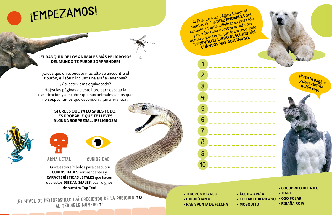 Lee las páginas de este libro para escalar el Top Ten y descubrir que hay animales de los que no sospechamos que esconden… ¡un arma letal!