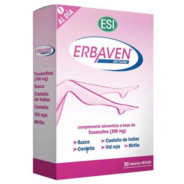 Erbaven Retard de Trepat-Diet es un complemento alimenticio de acción prolongada que contribuye al bienestar en las piernas. Diseñado para contribuir al alivio de los síntomas de la insuficiencia venosa leve en piernas con varices. De sus ingredientes se destacan la Troxerutina, el Castaño de Indias, la Vid Roja, la Centella Asiática, el Rusco y el Mirtilo; cada uno con propiedades específicas para contribuir a mejorar la circulación venosa.
