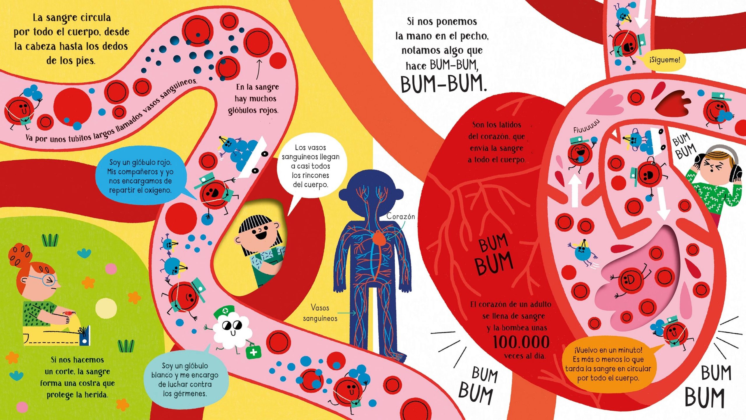 El cuerpo humano es un universo alucinante poblado de miles de millones de células, bacterias y otros organismos que cumplen con una función muy precisa. Mediante este libro de solapas y troqueles los pequeños van a poder descender, capa a capa, hasta las profundidades del corazón, el estómago o el cerebro, aprender cómo se articula el esqueleto y cómo éste se coordina con los músculos, cómo respiramos e incluso qué trucos hay que conocer para mantener el organismo fuerte y saludable.