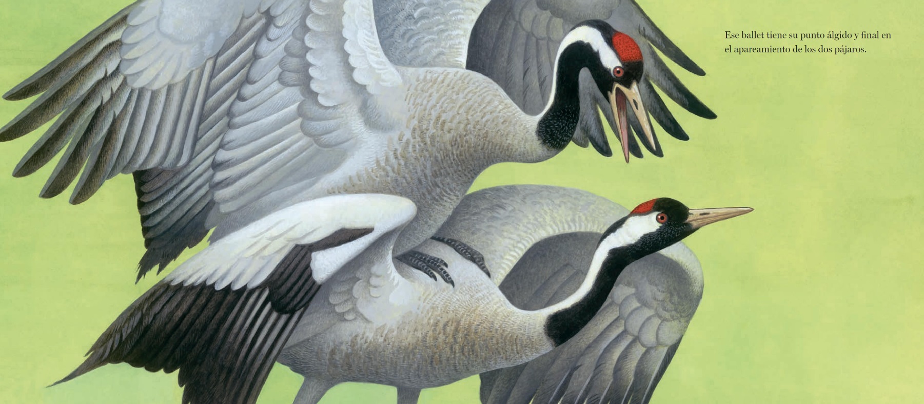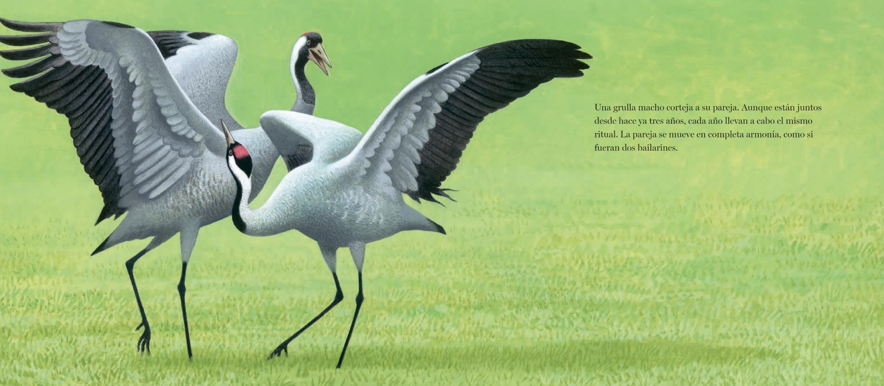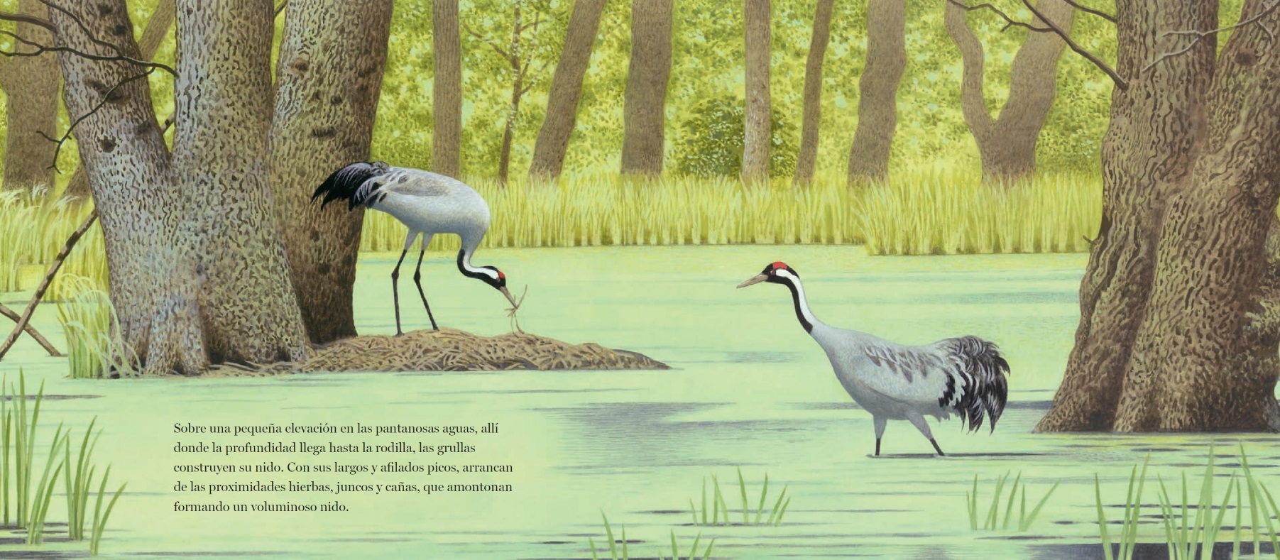 ¿Qué vuela gritando en el cielo sobre nosotros? Son grullas de camino a sus cuarteles de invierno. En este libro nos aproximamos mucho a los «pájaros de la felicidad» y acompañamos a una familia de grullas durante todo el año, desde el cortejo con su impresionante danza hasta la crianza de los jóvenes y el primer viaje juntos, el gran desfile de las grullas.