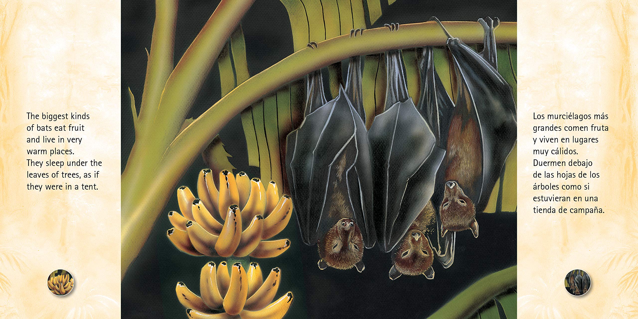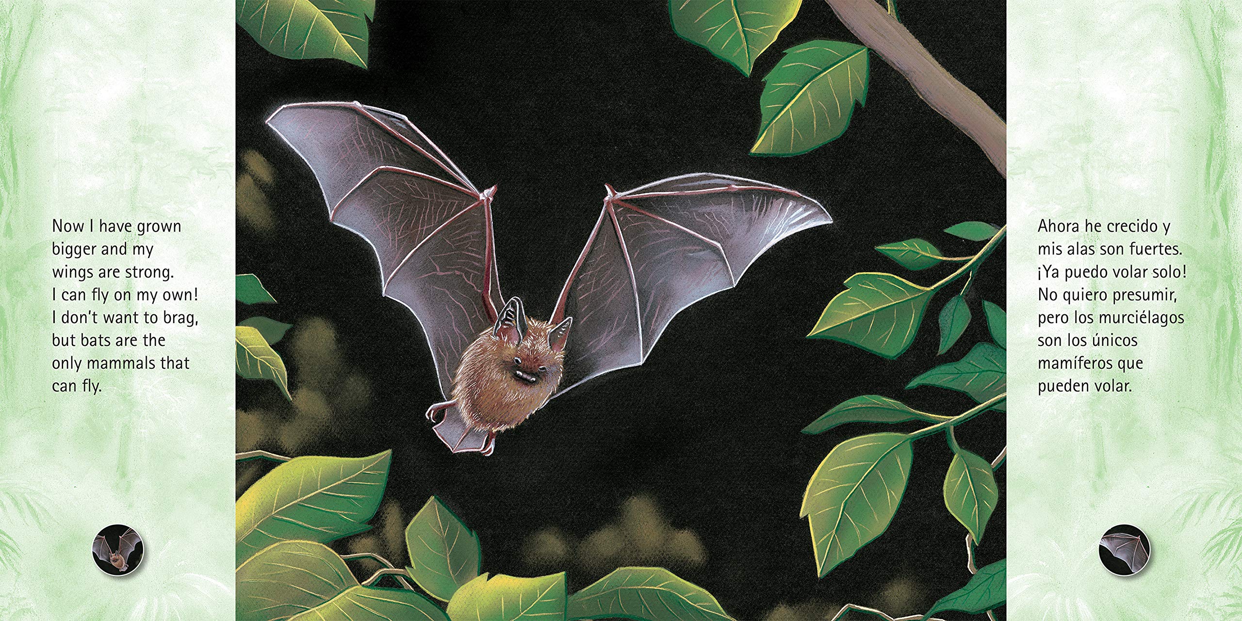 ¿Un mamífero volador? ¡Sí! Este murciélago quiere invitarte a su emocionante mundo. Él te contará cómo nacen los murciélagos y cómo son protegidos por mamá hasta que aprenden a volar. Aprenderás cómo cazan en la oscuridad y verás la extraña e ingeniosa forma en que beben agua. Si abres este libro, conocerás muchos tipos diferentes de murciélagos y aprenderás sobre sus increíbles estilos de vida. Además de ilustraciones realistas a todo color, este libro incluye textos en inglés y español y una página con datos interesantes y trivialidades sobre murciélagos.