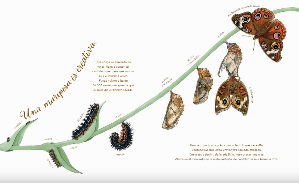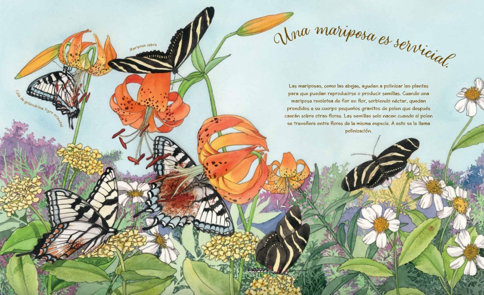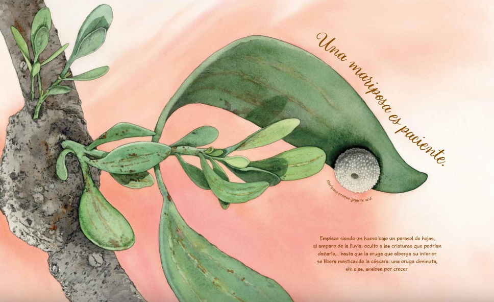 Este álbum ilustrado de conocimientos nos presenta una espléndida y bien documentada introducción al mundo de las mariposas. El lenguaje es poético y sencillo, adaptado a jóvenes lectores. Las ilustraciones son elegantes y llenas de detalles.