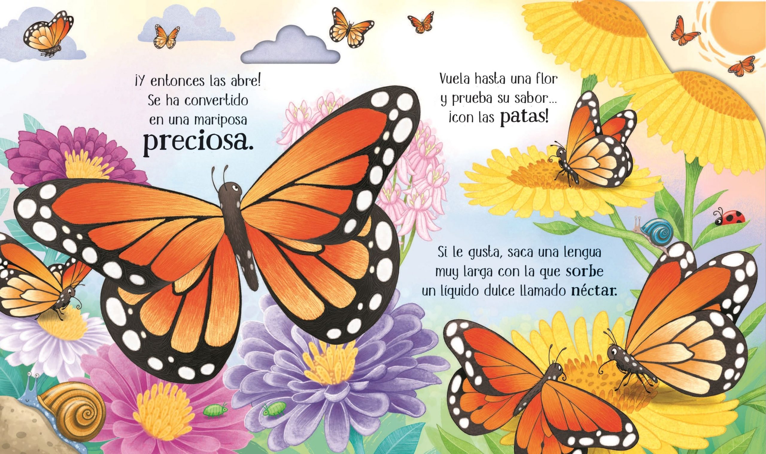 Un sencillo libro de solapas y troqueles para conocer el increíble ciclo vital de la mariposa, desde que es una oruga diminuta al salir del huevo, convirtiéndose después en crisálida y al cabo de un tiempo en un precioso insecto volador de bellos colores.