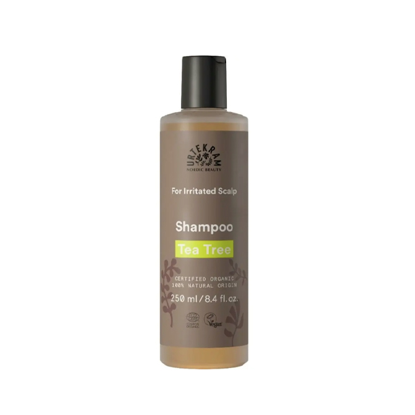 La corteza del árbol de té es un ingrediente clave para el champú Tea Tree Antibacterial Eco Vegan de Urtekram. Esta sustancia funciona como un astringente natural que alivia la piel del cuero cabelludo irritado. Además, también ayuda a controlar la producción de grasa del cabello para mantenerlo limpio y saludable.