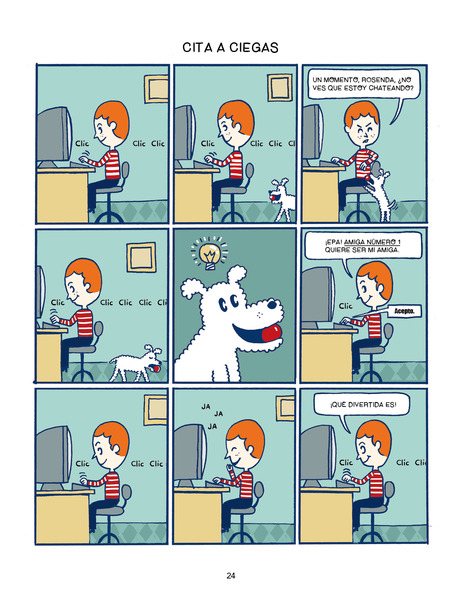 Así nos invita un niño pelirrojo y travieso a entrar en su cómic. Casi nos lleva de la mano para descubrir sus oníricas aventuras y sus descabelladas ideas. Uxío tiene una amiga, Ana, y una perrita, Rosenda, que le acompañan a todas partes, incluyendo, por supuesto, los lugares que visita gracias a su desbordante imaginación. Las coloridas páginas de este álbum para lectores a partir de 6 años contienen las peripecias del chaval presentadas en relatos cortos de un par de páginas, con humor, poesía y agilidad. Algunas de ellas hasta pedirán al lector su participación.