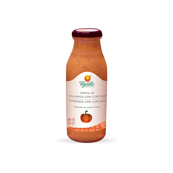 Esta crema de calabaza con cúrcuma ha sido elaborada por Vegetalia con ingredientes naturales y respetando el medio ambiente. La calabaza es un alimento con propiedades beneficiosas para nuestro organismo, entre ellas destaca su contribución al cuidado y mantenimiento de la piel. La cúrcuma no solo es una especia digestiva, sino que además nos protege de diversas enfermedades, por lo que debemos incorporarla a nuestra alimentación. ¡No esperes más y disfruta de los beneficios de la crema de calabaza con cúrcuma de Vegetalia!