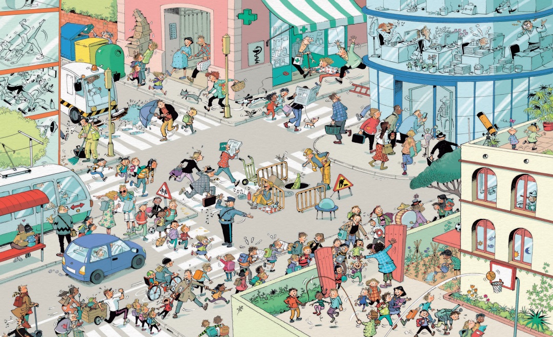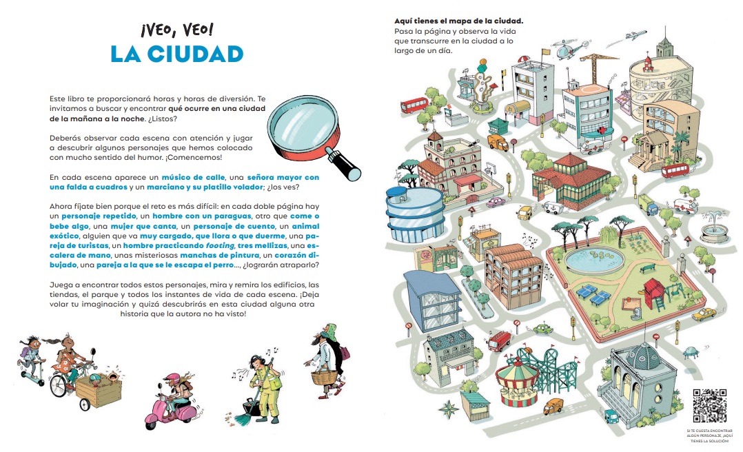 Desde la mañana hasta la noche, en una ciudad pasan muchas cosas: a primera hora, verás a los que van a trabajar o al colegio; al mediodía, el mercado es un bullicio de actividad, y, por la noche, la gente tiene ganas de descansar y de pasarlo bien. Busca y encuentra todos estos personajes y muchos más en este maravilloso libro ilustrado de Cristina Losantos. ¡Veo, veo! La ciudad es todo un reto. ¿Te atreves?
