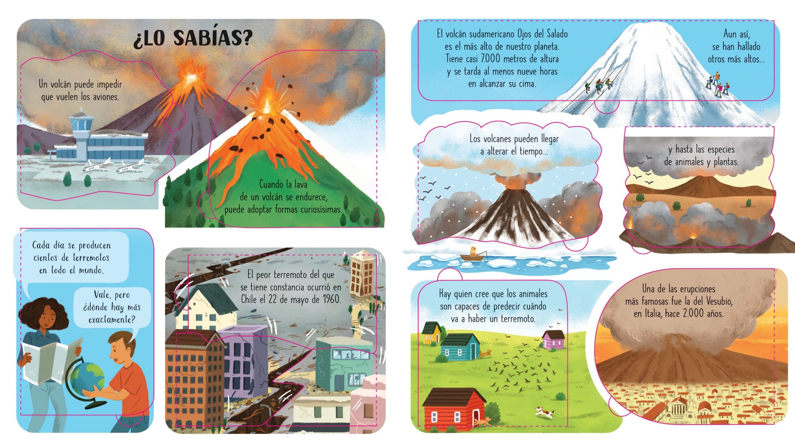 ¿Cómo será estar cerca de un volcán en erupción o presenciar un seísmo? Este libro con solapas ofrece vivir esta experiencia desde la seguridad del hogar, y acerca a los niños a la realidad de muchos países donde, con frecuencia, y por sus características geológicas, deben estar siempre preparados para cualquier eventualidad.