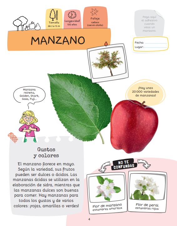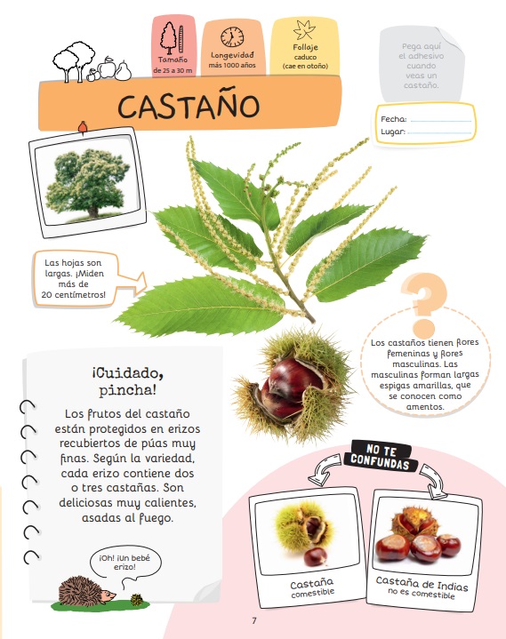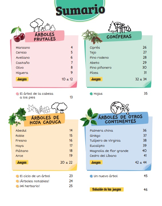 Práctico cuaderno para reconocer fácilmente los árboles que encontramos en nuestro día a día, ya sea en la ciudad o en el campo. Los robles, plátanos, olivos, abedules o abetos dejarán de tener secretos gracias a las 24 fichas de identificación de este cuaderno, que recogen árboles frutales, de hoja caduca, coníferas y árboles venidos de otros continentes.