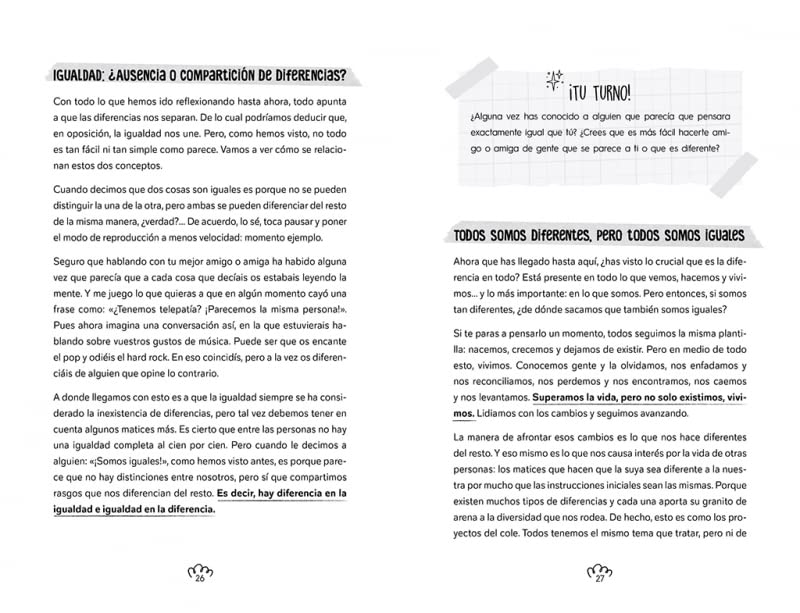 A través de la historia de Sara, ahondaremos en el significado del concepto DIFERENCIA y en las consecuencias que tiene a ojos de las nuevas generaciones. ¿Qué es ser diferente? Si todos somos diferentes en una u otra cosa… ¿no es ser diferente algo normal? Un libro lleno de reflexiones, conceptos y ejercicios, para darnos cuenta del valor de ser diferente y erradicar las dinámicas que fomentan el bullying o acoso escolar, un tema de gran actualidad y que tanto preocupa a adolescentes, familiares y profesorado. Un libro en sintonía con la sensibilidad de obras como los éxitos Invisible o Wonder.
